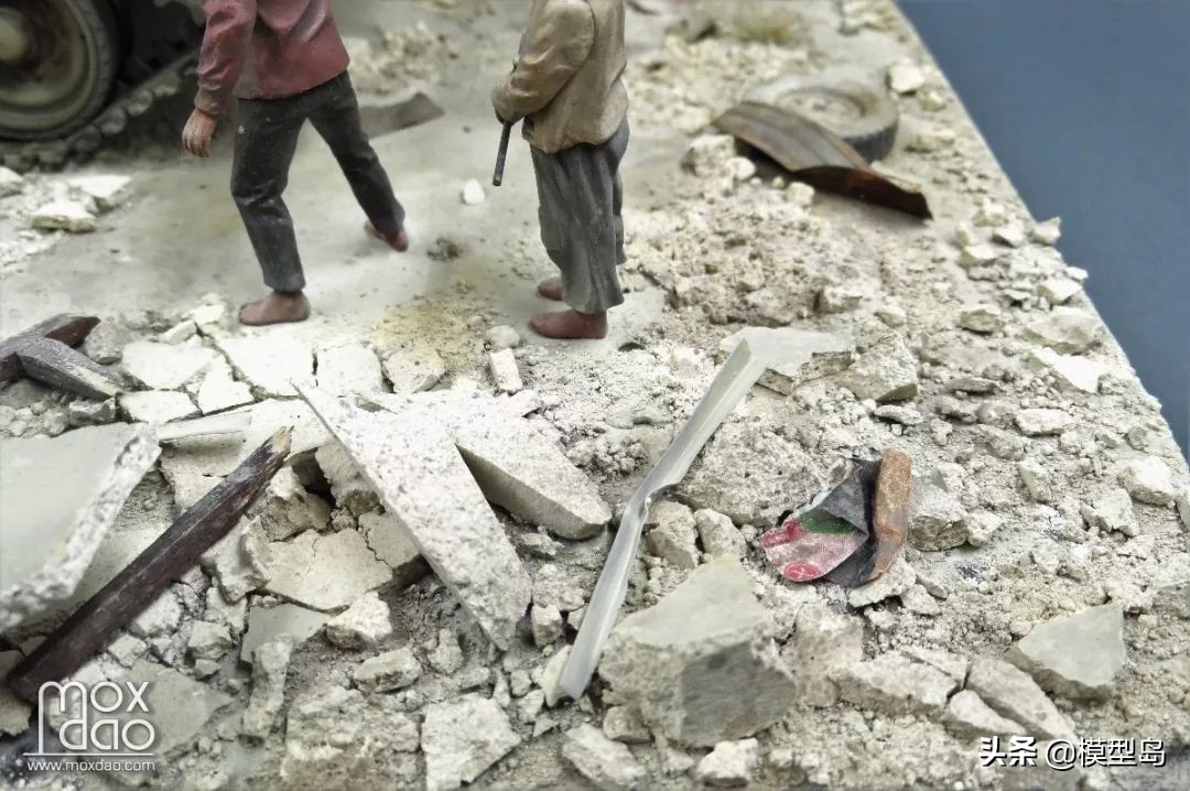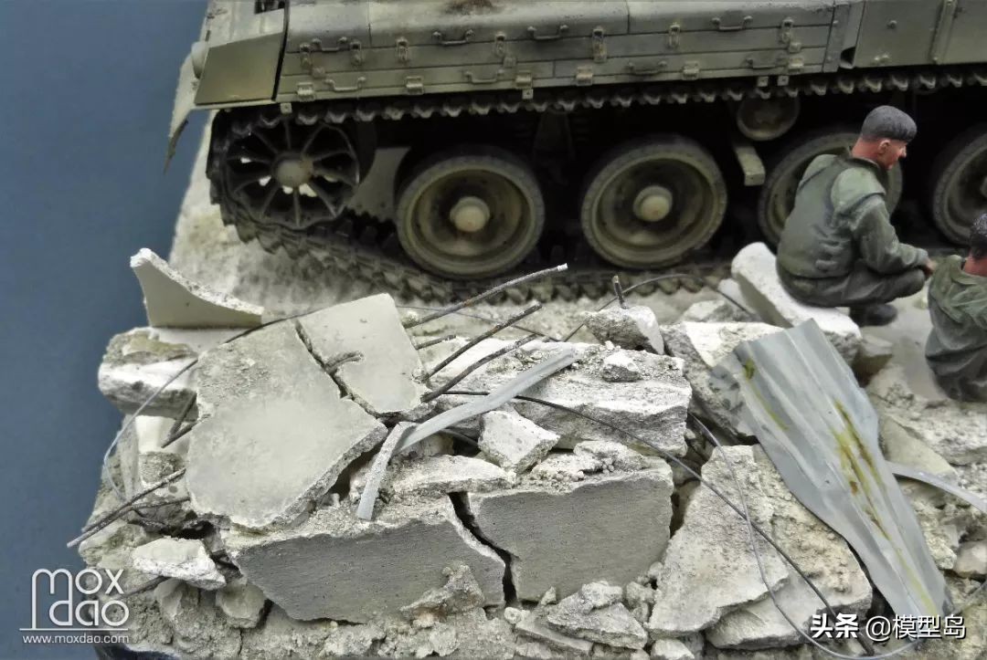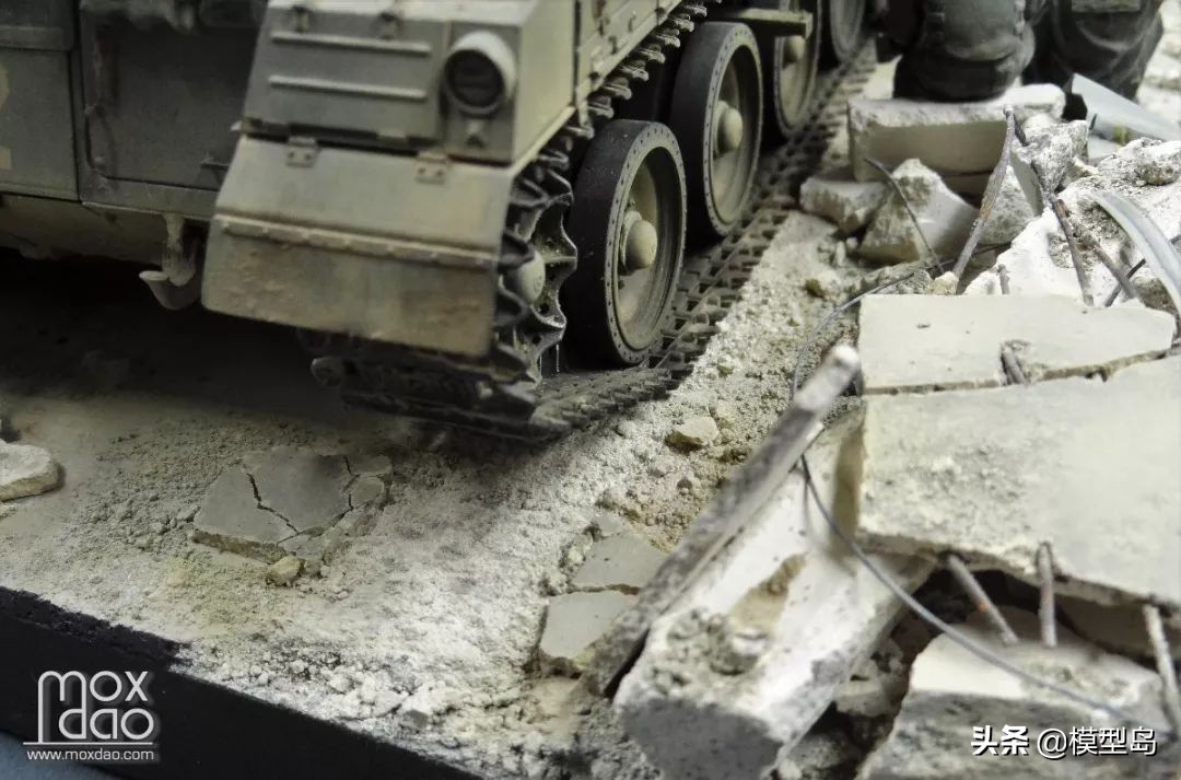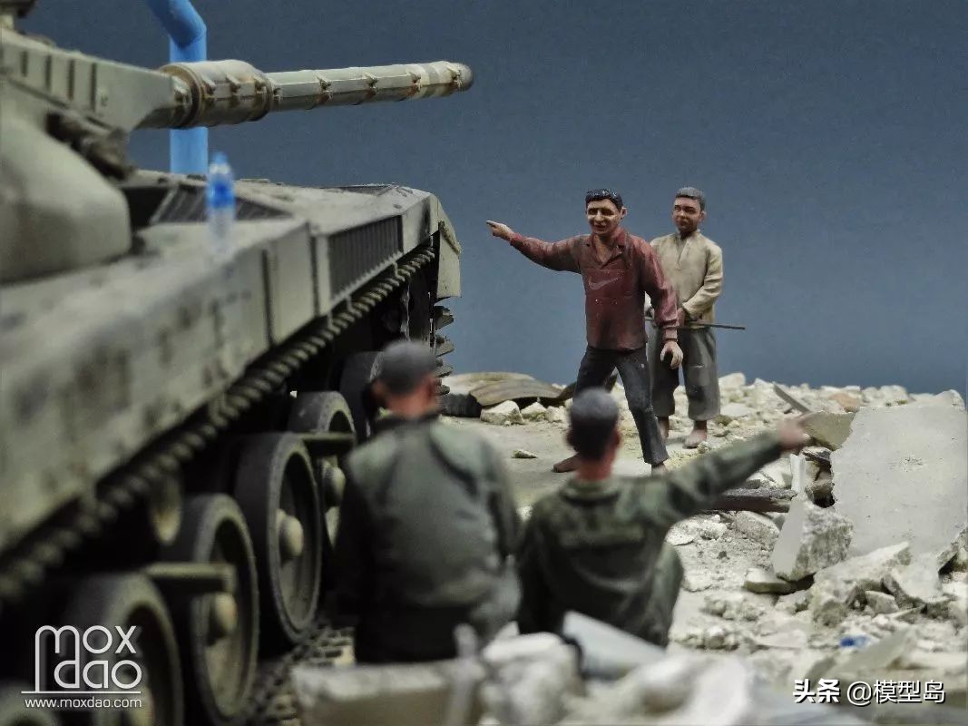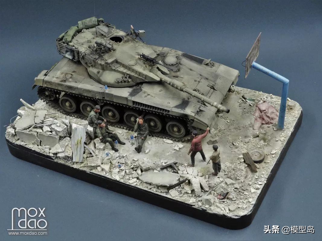 在做这辆梅卡瓦的过程中我一直在思考如何做一个场景,当初买梅卡瓦是被它以保护乘员安全为先的设计理念打动,我一贯不喜欢战斗的场面,所以我决定制作这个非战斗场面但又体现双方冲突的场景。