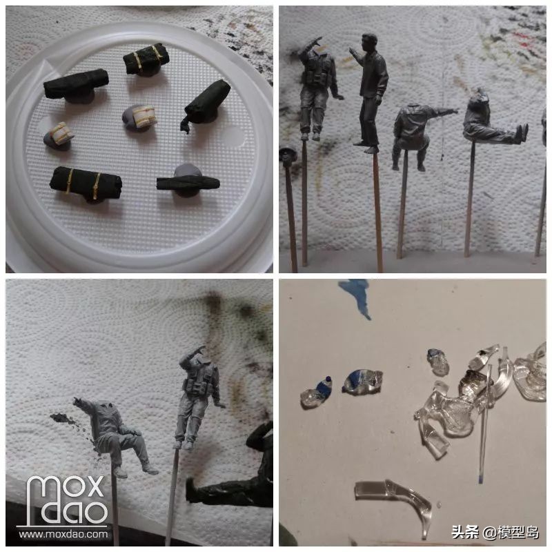 手上没有以军包裹,用纸,胶带和蚀刻片残料制作,废弃水瓶用透明件流道尝试了好多次才成功