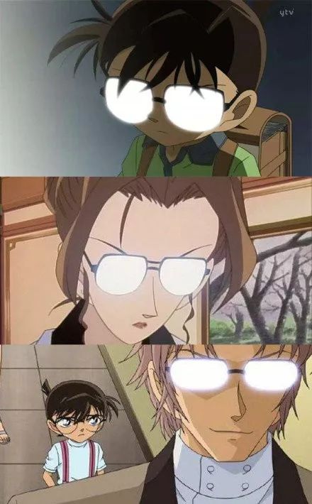 很多热心网友还让潘粤明的led眼镜和柯南的眼镜作对比,简直神同步了。