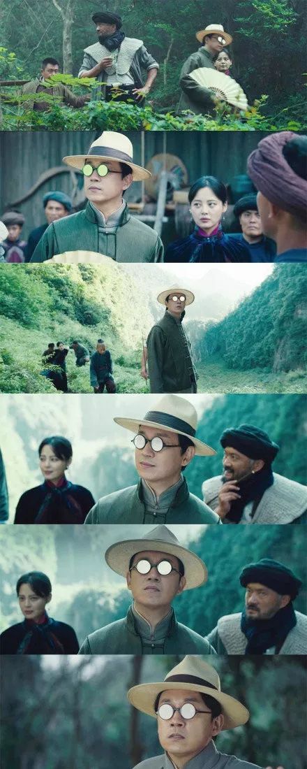 剧中潘粤明饰演的陈玉楼因为带着一副眼镜,这副眼镜因为折射,很容易反射外部环境的光,从而导致某个画面看不到潘粤明的眼睛,只有一双闪闪发光的镜片,真的笑skr人。