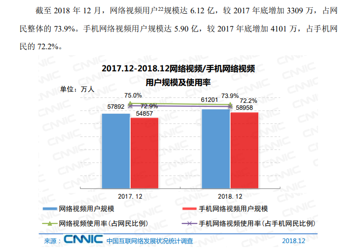 其实不论泡面番还是短视频,都是顺应时代发展的新兴事物,两者都是在2000年后开始兴起的,泡面番在动漫番剧中的比例正在逐年提升,如今已经达到了20%~30%。而短视频更甚,根据《中国互联网络发展统计报告》显示,截至2018年12 月,中国网民规模达到 8.16 亿,其中视频用户规模超6.12亿,差不多占了8成。
