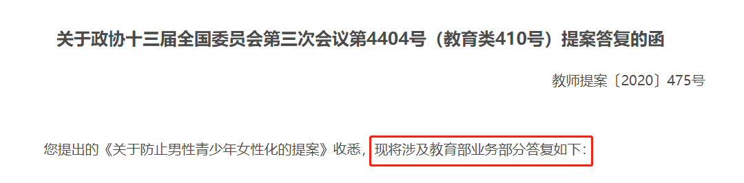 而对于这样有失偏颇的提案,教育部是如何回应的?