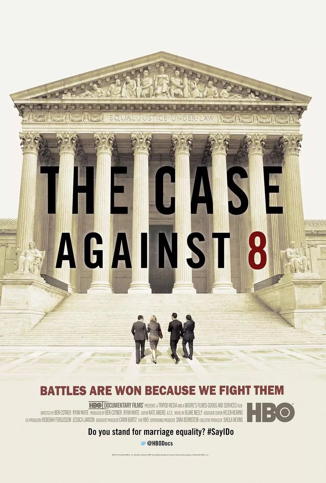 hbo出品的纪录片,讲述了2008年美国大选期间,美国加州通过了一项极具争议的8号提案,将婚姻权界定为仅限于一男一女的婚姻,使加州同志群体丧失了4个月前刚刚获得的合法婚姻权。于是两对加州同志情侣与律师联手,把本案打到最高院,最终8号提案被废止。【9.0】