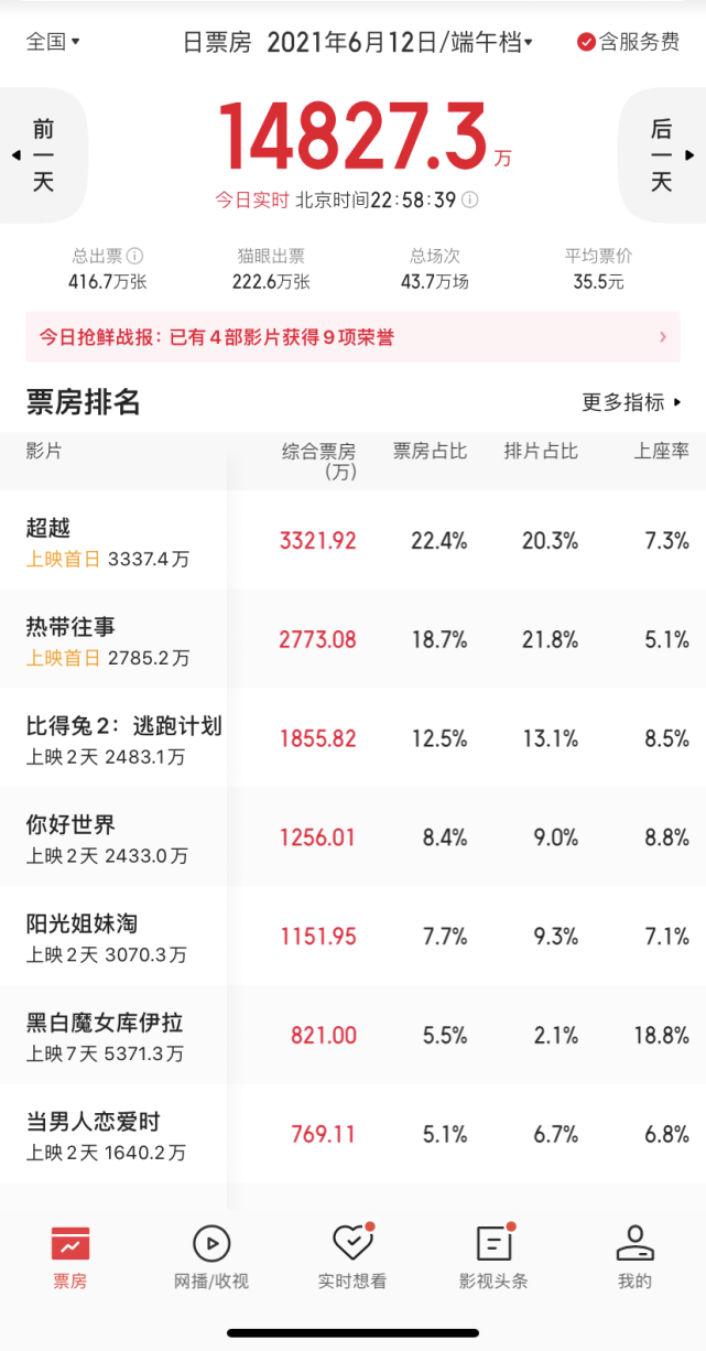 在他看来,端午档看似电影很多,但其实“没得排”。“第一天就一部《你好世界》,第二天《超越》和《热带往事》可能会成档期头部,但整体票房都不会很高,也就是一亿的水平。以往的档期都会产出一两个爆款,但今年端午档会比较平均。”