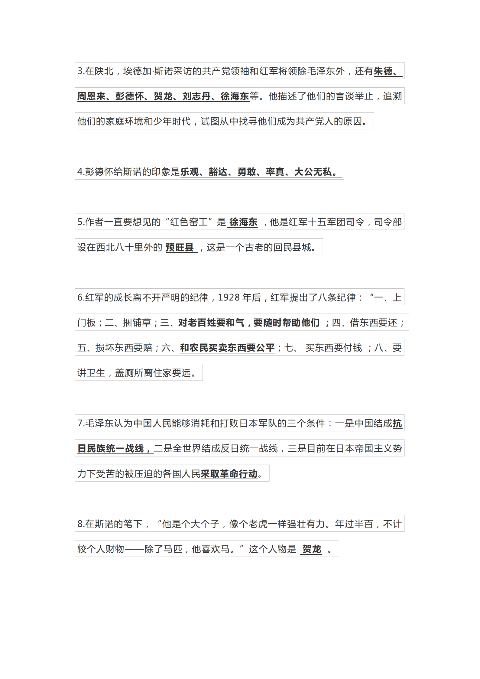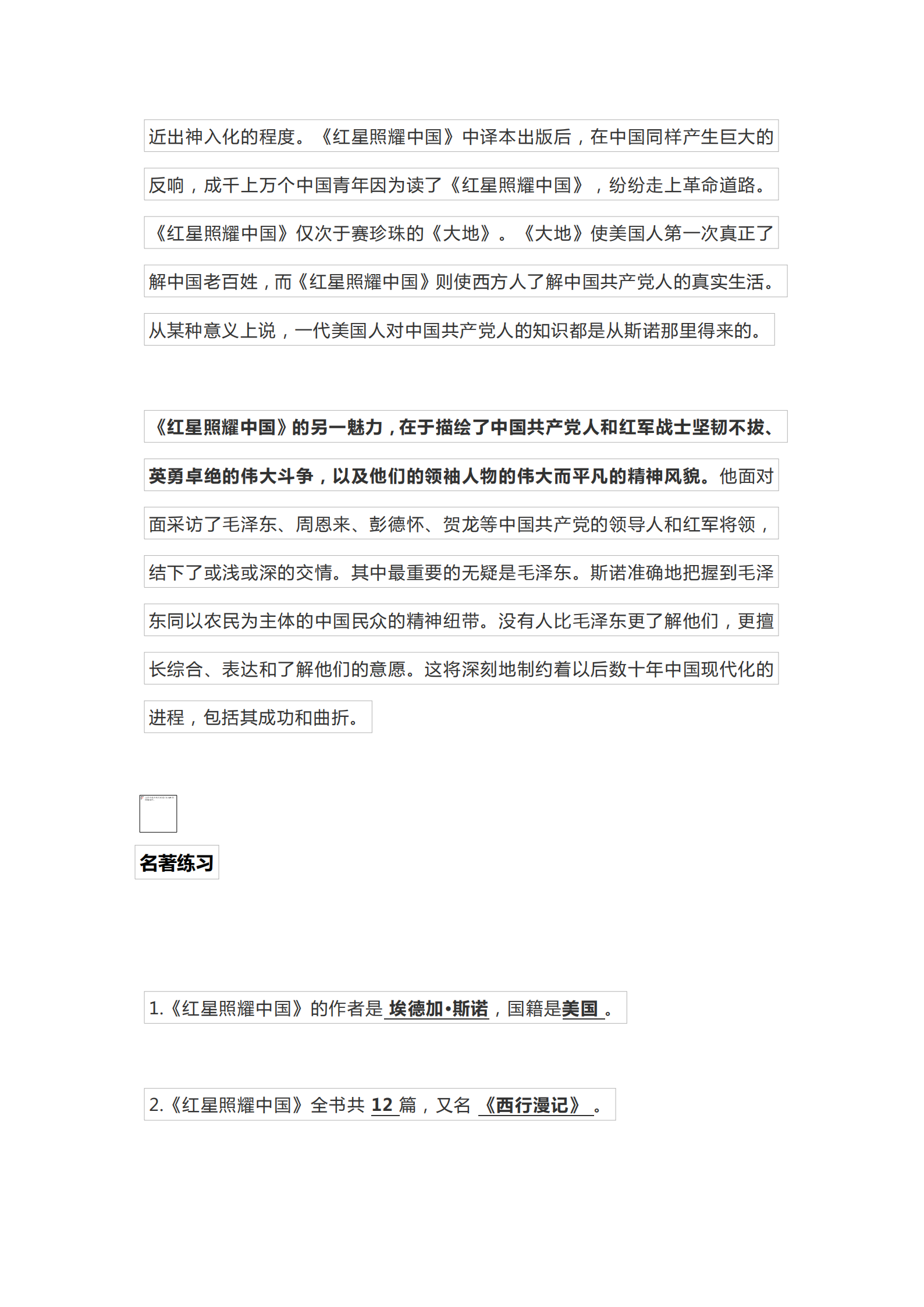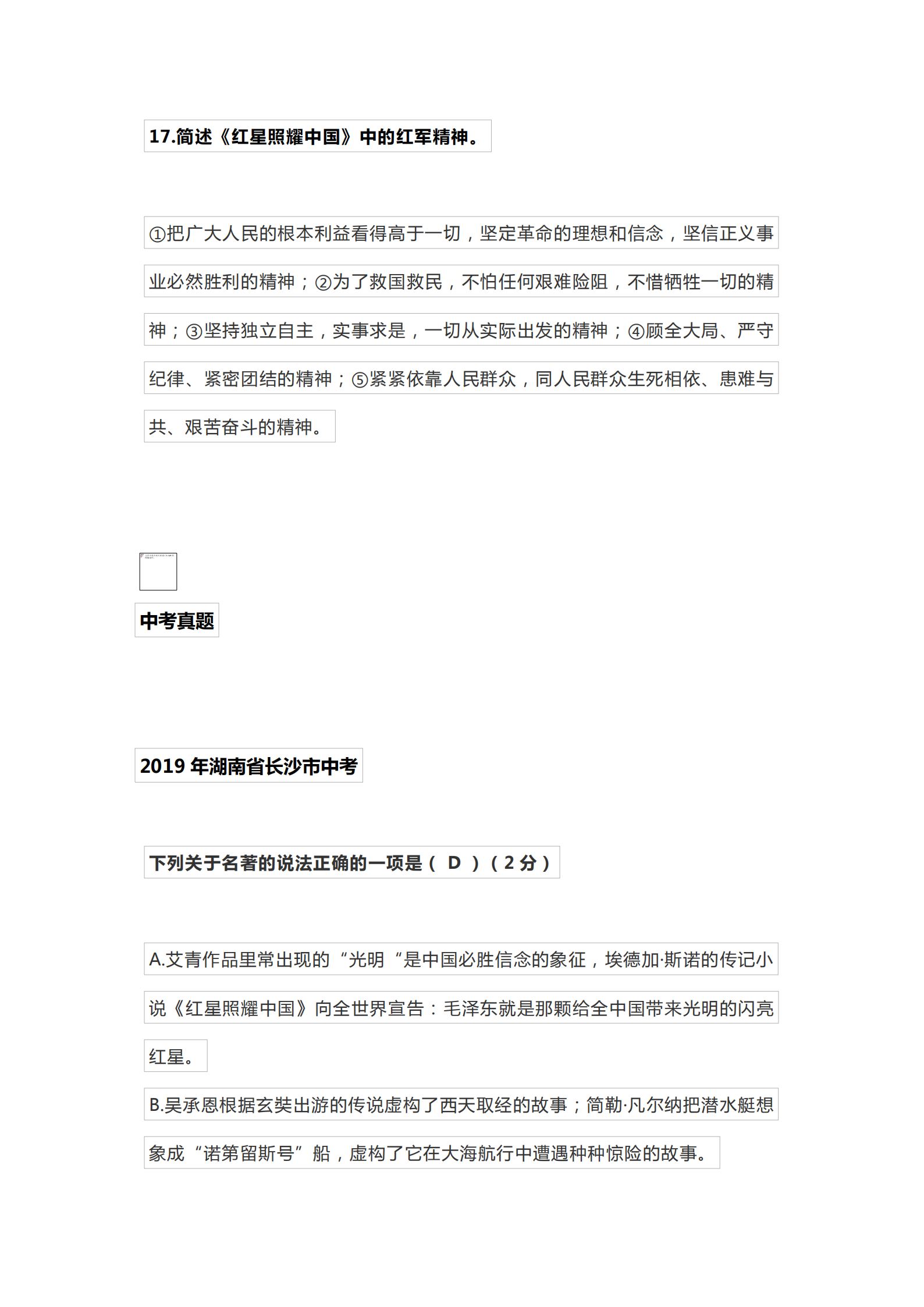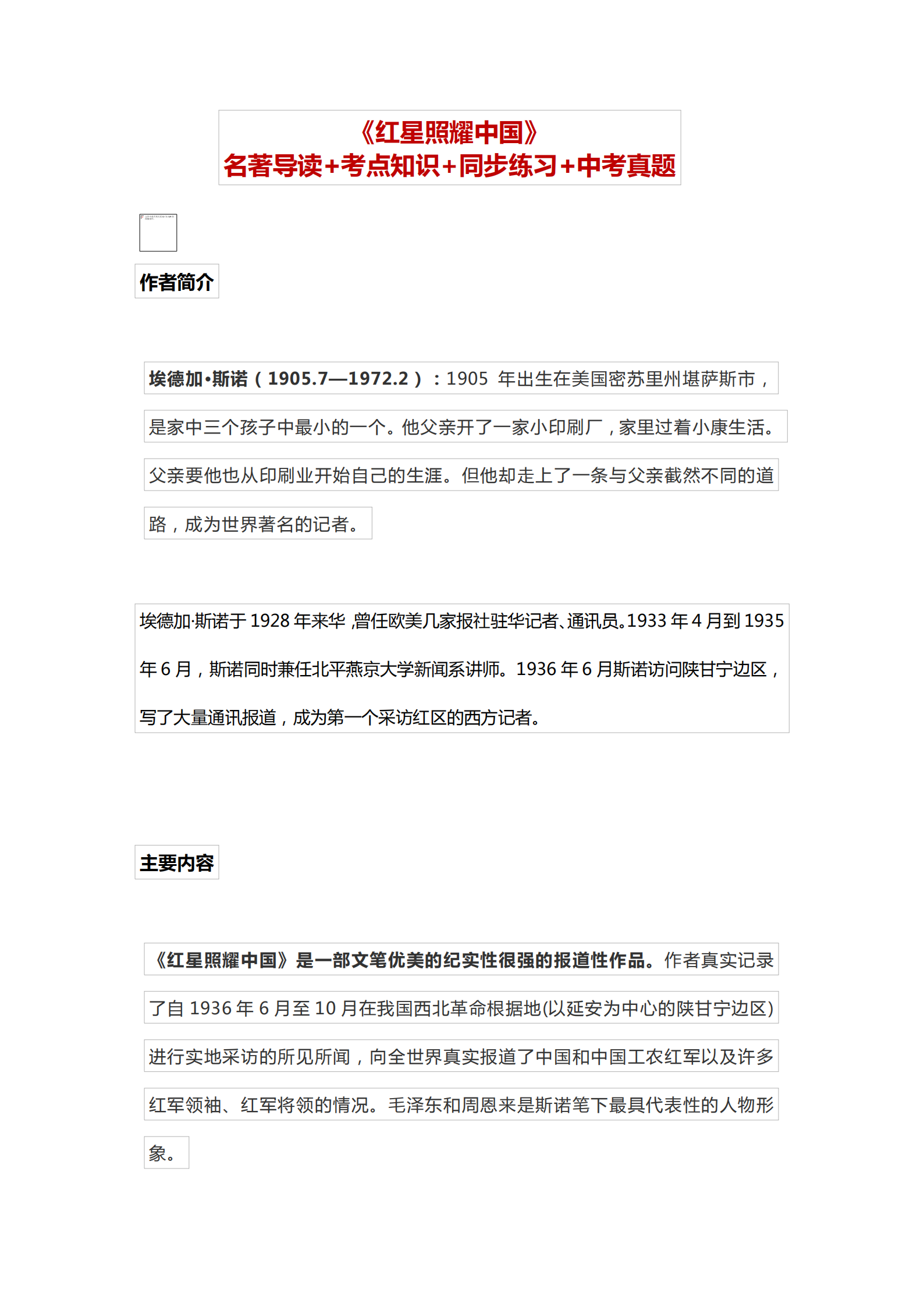 《红星照耀中国》:名著导读+考点知识+同步练习+中考真题!打印