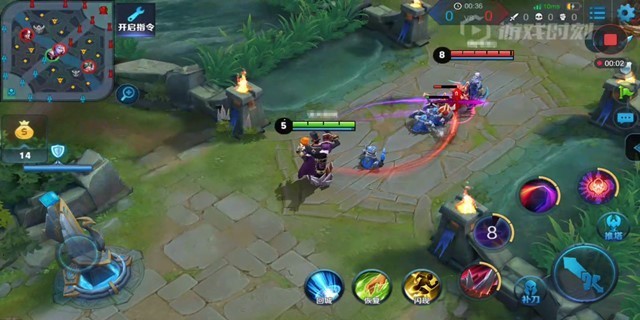 前期1级点2、3技能。干将莫邪的对线能力很强,这里有一个小技巧,就是开局干将莫邪先到草丛,等到兵线交汇后先利用三技能的双剑交汇打敌方中间的那只小兵,这样交汇后的双剑可以再溅射到另外的小兵,接着再使用二技能重复上述操作,就能很快地清理兵线,同时对敌人造成不低的耗血。干将莫邪没有四技能的视野距离提升是很难发挥消耗优势的,因此前期要稳定发育。