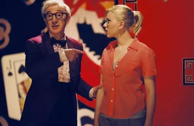 而另一边,斯嘉丽·约翰逊扮演的女大学生桑德拉正在观看一场魔术秀,而伍迪·艾伦扮演的魔术师希尼将她邀请上台配合魔术表演。