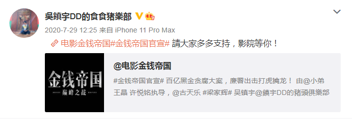 而作为影片主演之一的吴镇宇,也配合导演王晶,在社交平台对电影的宣发,进行了预热。