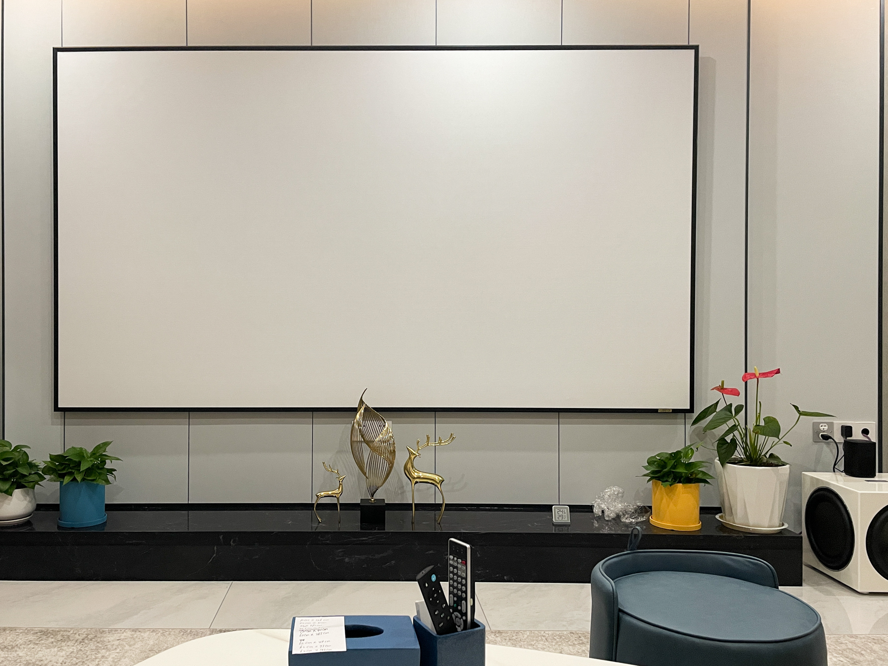 阿木在自己新家的客厅搞了一个5.1.4的杜比全景声4k家庭影院,但他并不认为自己就是“发烧友”了,虽然做了家庭影院也不存在所谓的“入坑”。