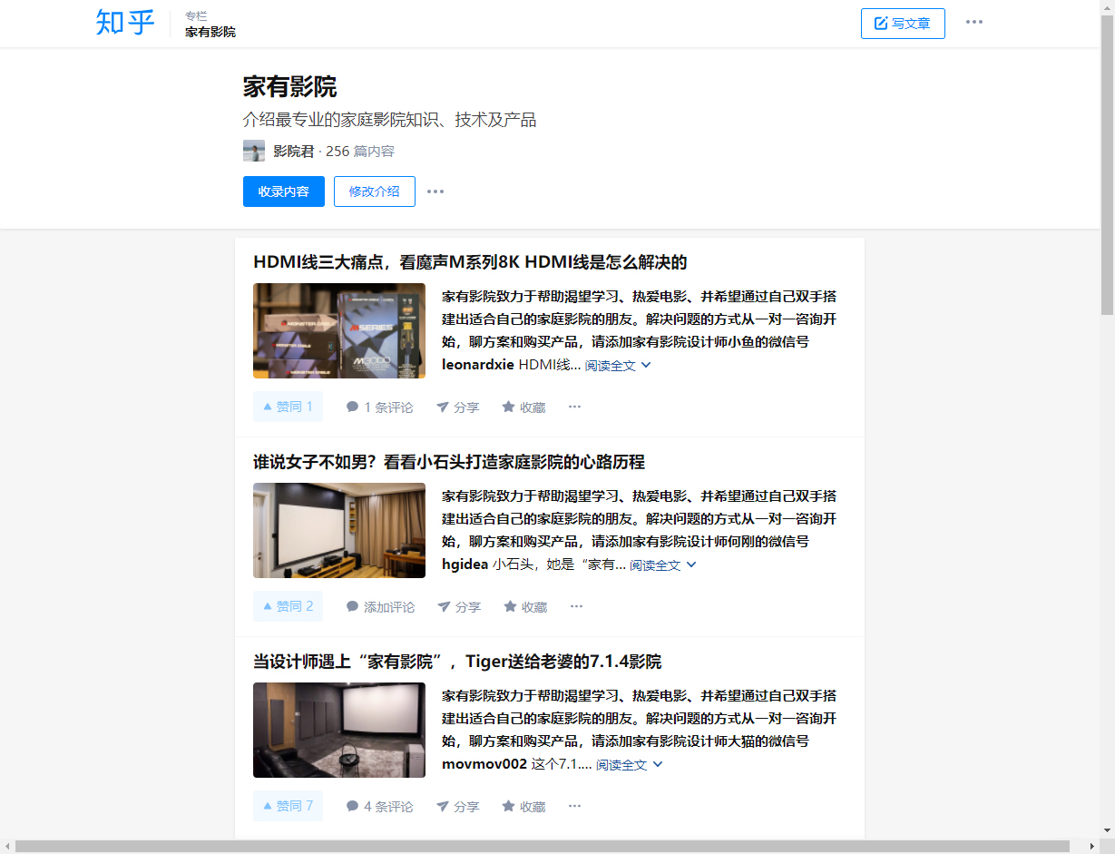 一次,在知乎上看了“影院君”的关于家庭影院的几篇文章后,他的观念颠覆了我对家庭影院认知,于是结识了“影院君”,并加入了“家有影院天使二群”。