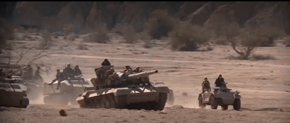 兰博一边高速驾驶坦克,一边狂轰苏制直升机;而另一侧反派头子驾着直升机猛扑兰博。两人互不相让,最后被兰博打成筛子,把飞机怼爆。而坦克大战桥段,在《战狼2》被用到了极致。