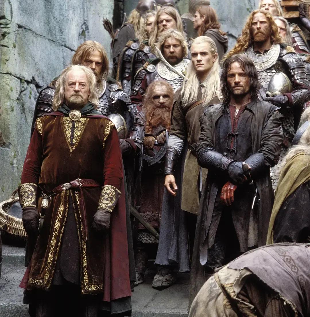 人们在这些史诗般的壮观场面中所忽略的是人物的深度。所有的主要人物都有一两个特征,然后由他们的行动来定义。佛罗多,这个名义上的英雄,大部分时间都在观察周围的事物,看着别人决定他的命运,偶尔也会意味深长地盯着戒指。山姆是他在场外的忠实伙伴。梅里和皮聘在电影的高潮部分骑在树胡子的树枝上,瞪着眼睛看着一切,就像孩子被扛在父亲的肩膀上一样。第一部电影的团契在这一部中被分成了三部分,大部分的动作都围绕着阿拉贡,他在维京剑士和中世纪骑士的传统中运作。