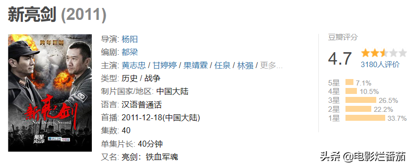 《亮剑》的名气让不少人趋之若鹜,所以早在2011年,就有《新亮剑》问世,该剧可以说是处处都有原版《亮剑》的影子,但最终还是东施效颦,以豆瓣评分4.7的结局难堪收尾。