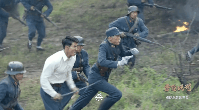 而在另一场戏中,高伟光拿着把剑就冲上战场了,这是要拿冷兵器对抗真枪实弹啊,最关键的是,敌人硬是一颗子弹都打不到他,真想问问是不是练了金钟罩铁布衫。