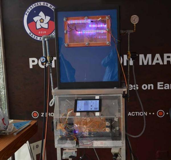 类火星土壤和土豆块茎就被放置在这个封闭环境中,cubesat为农作物提供含有营养物质的水,模拟火星上昼夜变化的情况,调整温度、气压、氧气和二氧化碳浓度。传感器持续监测这些指标,而直播摄像机会监控泥土的情况,以预测土豆发芽的时间。