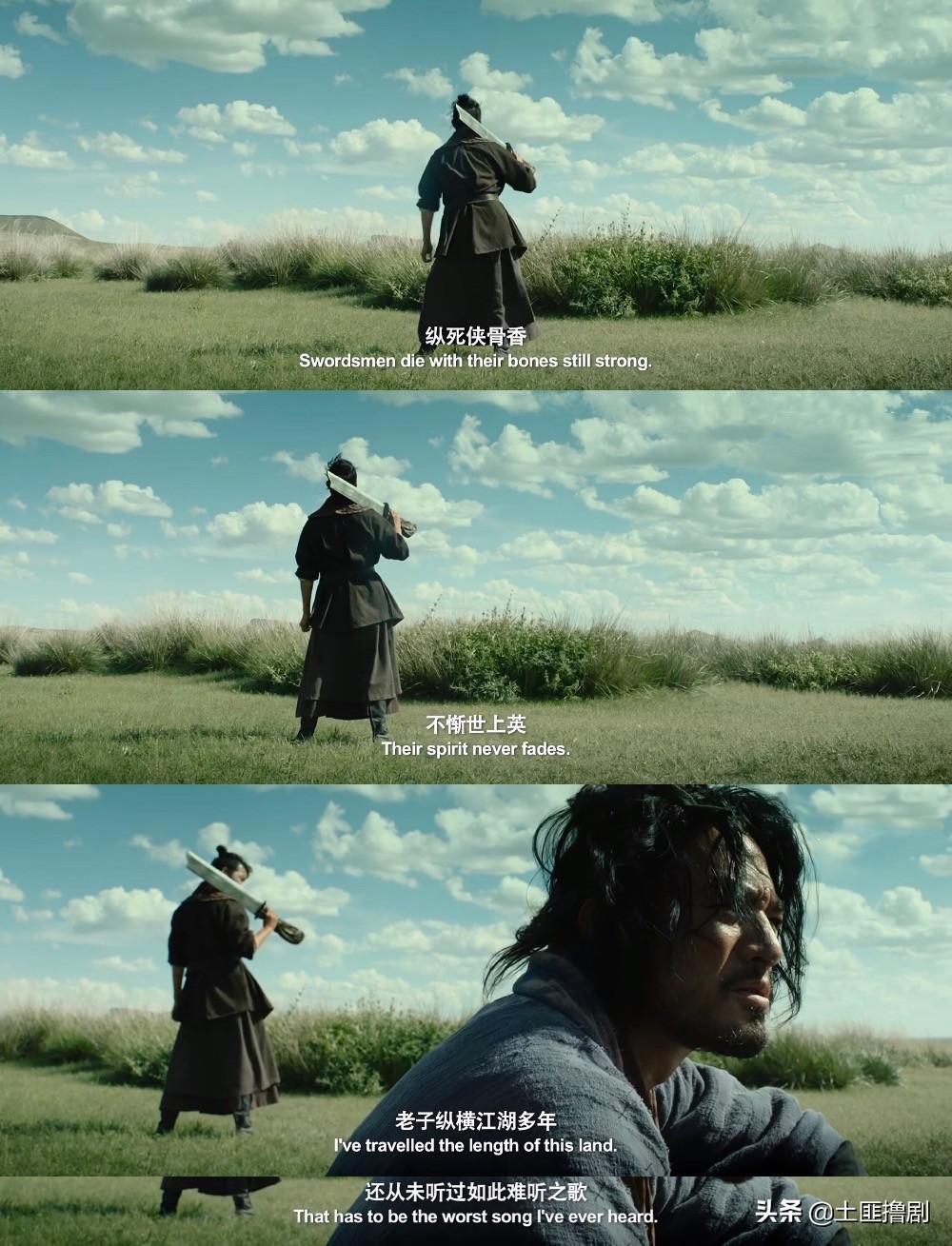 剑客们很努力地摆出了不羁的姿势,不过这电影没有特别激烈的打斗,也就只能说“身形还行”了。