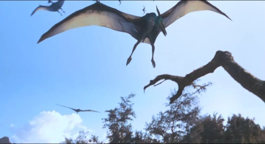当时同样也无法呈现在天上飞的翼龙,直到《失落的世界》的结尾才出现。