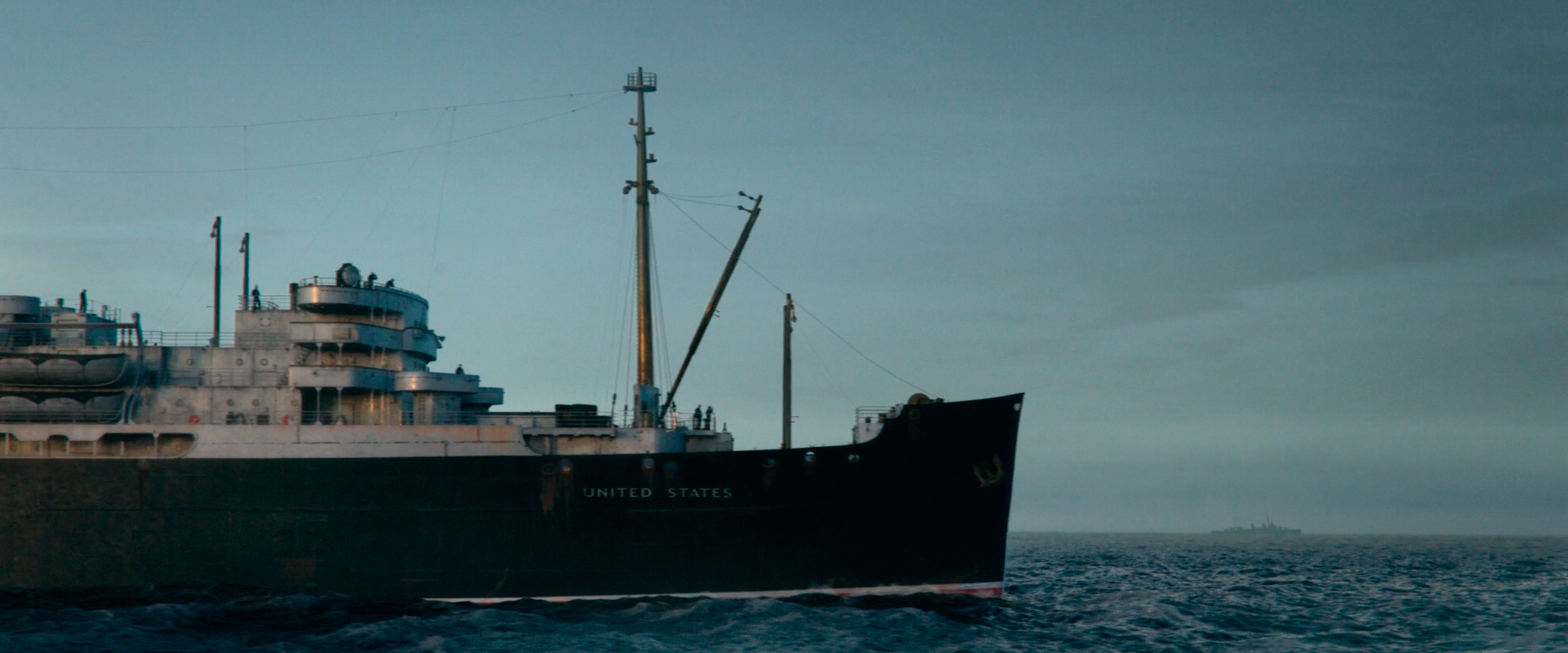 影片中船头刷有“合众国”号(united states)字样的运兵船虽说吨位比不了上述的庞然大物们,但目测也接近20,000吨级了,因此影片实际上是为一个军事目的的船队配备了只有贸易船队级别的薄弱护航力量,或者说是把一艘大型快速运兵船毫无必要地编入了一支风险大得多的贸易船队(作为贸易船队快速系列的hx船队标准航速只有9节),尽管不能否认影片最后运兵船上士兵为感谢护航舰艇的保护而欢呼的场景令人动容,但这在真实情况下是不合理的。