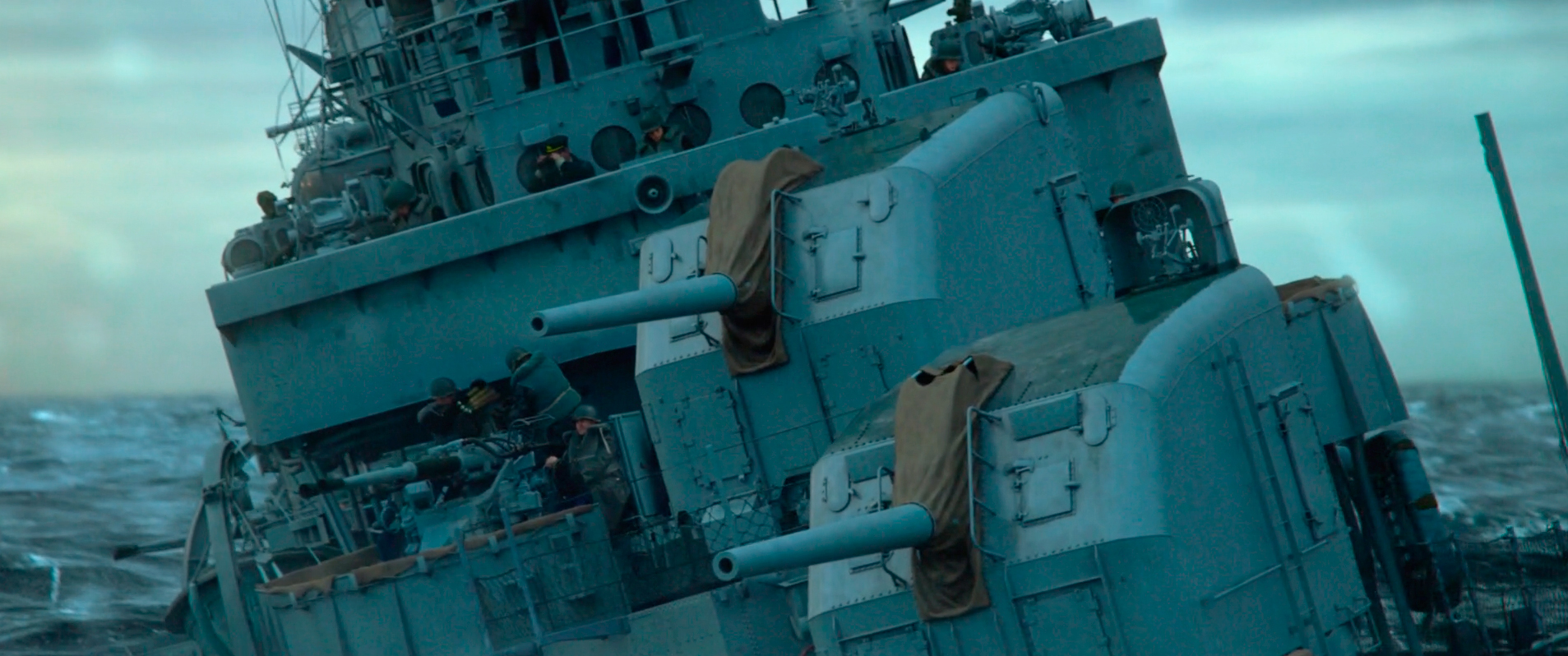 然后就是拍摄技术上的原因,在cg技术成熟前,要真实地呈现水面水下作战尤其是护航船队时常遭遇的夜战是极其困难的,耗费巨资去为一个不叫座的题材打造视觉效果显然是不值得冒险的。如今,这一障碍早已不存在,尽管《灰猎犬号》的cg精细度一般,有时看着难免觉得像游戏宣传片,但它为影片的视觉表达所提供的无穷可能性不是以前的制作方式可以比拟的。