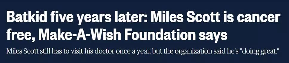 但从2岁时,第一次在电视上看到蝙蝠侠的那天起,迈尔斯就生出了抵抗病痛的勇气。