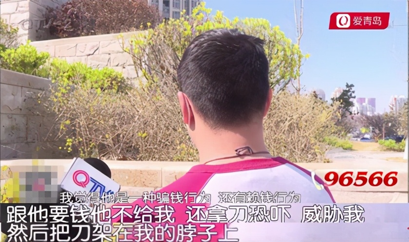 张先生:我觉得他是一种骗钱行为,还有赖钱行为。跟他要钱他不给我,还拿刀恐吓、威胁我,然后把刀架在我的脖子上。