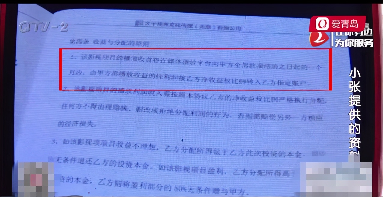 张先生:我在这个公司上班期间,这个老板跟我说投资影视项目,说是投资电影挣钱,说给我保本,如果赚了,赚得部分五五分成,如果亏损了,会把本金给我。