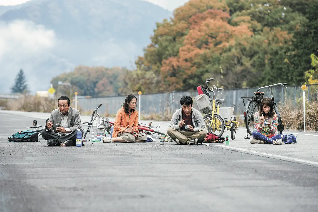 如果说铃木一家的关系刚开始还能维系原有的平衡,那么在后来的旅程中,家人之间的问题日益突出。求生的旅途中,儿子依然不忘随身携带没电的手机,女儿依然穿着绚丽的服装、戴着假睫毛,爸爸依然行使着父亲的权威,妈妈依然胆小怕事。他们彼此之间互生不满,却没有点破现状。