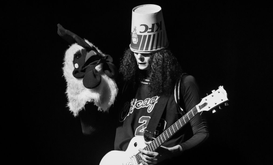 有位著名的吉他手名叫桶头(buckethead),他演出永远戴着一张白色面具,头上套个全家筒纸盒。