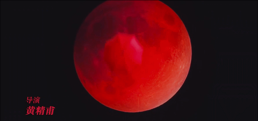 纯黑的背景下,一轮血红色的圆月,一把张开的红色雨伞在月亮前飞舞,绝美但又诡异。