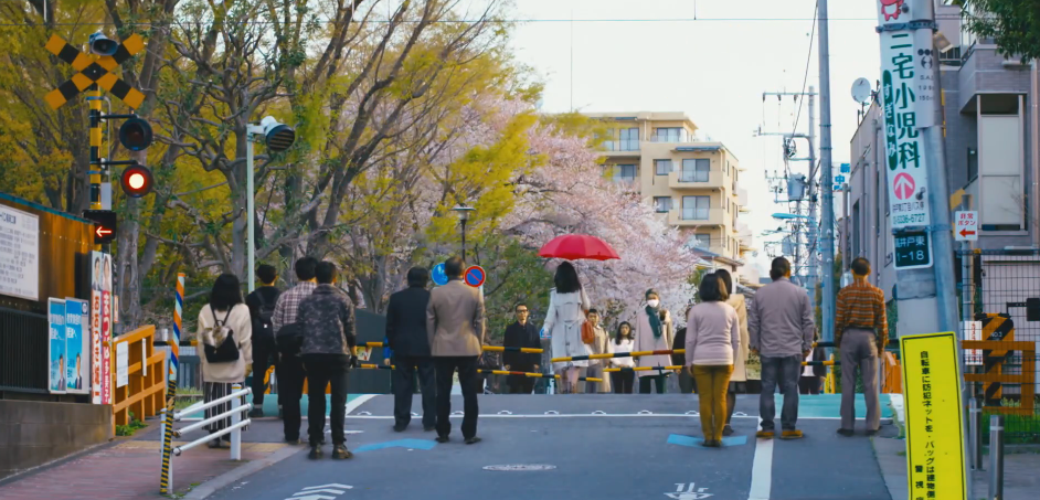 她微笑着走进列车与道路相交的平交道,一切都还是那么美。