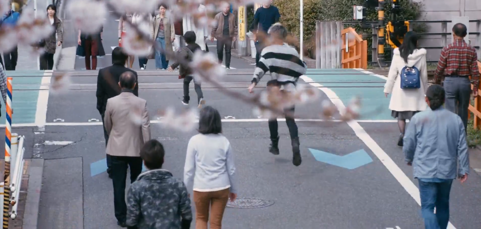 碾过的一瞬间,天色变成了夜晚,同样的樱花飘落,同样的绝美。