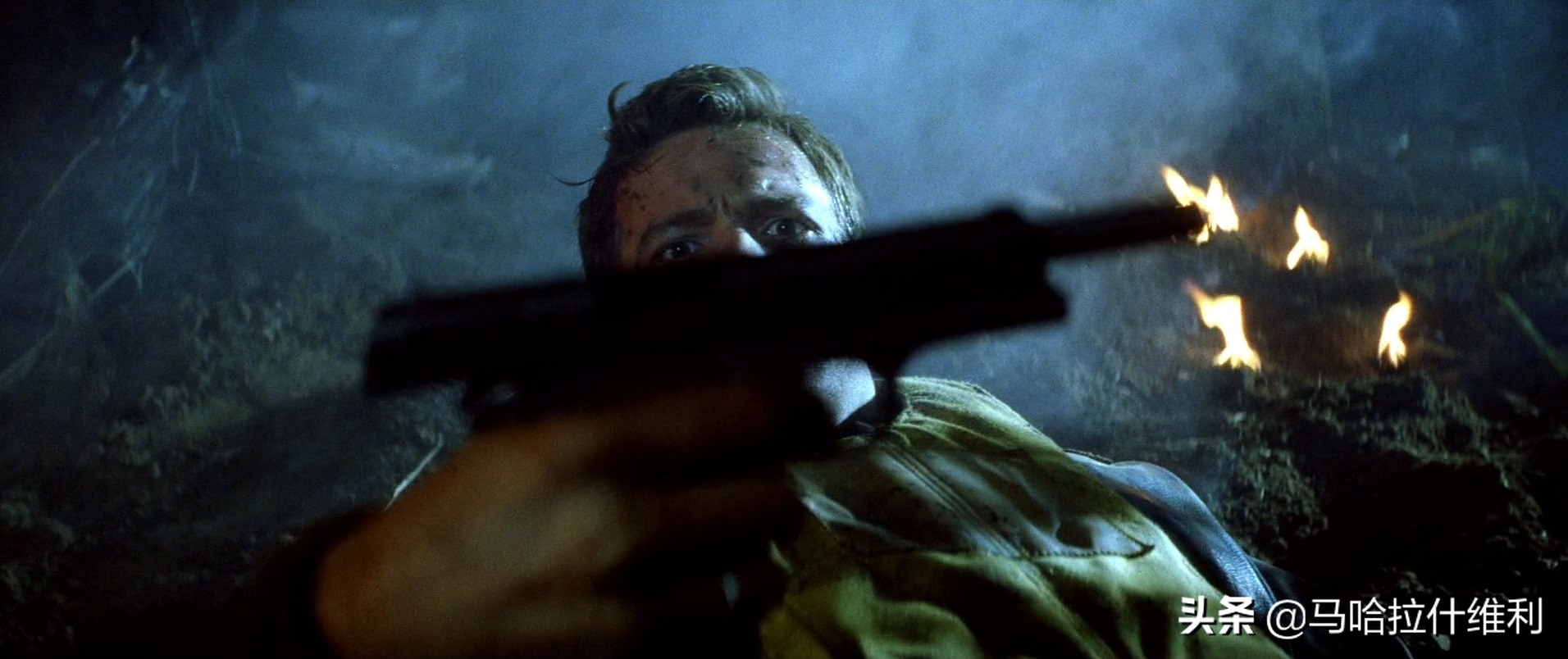 在拍摄夜间场景时,创作团队也制造了许多人工光源,但对于色温的把握非常合理。在杜立特空袭成功,乘员坠机之后,日军巡逻队的包围镜头和雷夫拿手枪为救丹尼的开路镜头显然是标配了人工光源的结果。但是此类镜头不仅能使画面的对比度更大,还起到了强调画面焦点和主体的作用。