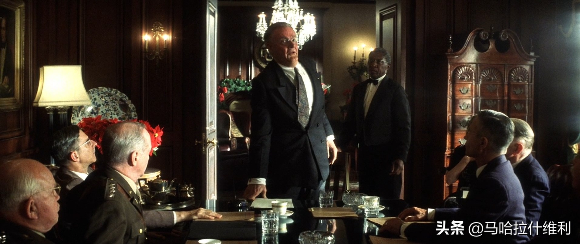 其实,上述特点是一本成熟的好莱坞电影必备的,但是我认为本片的摄影在布光方面下的功夫更多。在绝大部分非战斗场面中,人物的轮廓光能保持“常亮”状态。除了少数因地域气候的限制而无法定调之外(比如英国的阴雨天),大部分灯光的色温冷热鲜明。即使是城市街头的亲密戏,摄影师都要给出强烈的侧光,以烘托谈话的氛围。而影片头尾影调的呼应,应该是观众最能把握的风格了。