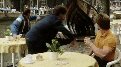艾里克于是也驾驶着快艇追了上去,两人在城内的河道上演了一场水上狂飙。