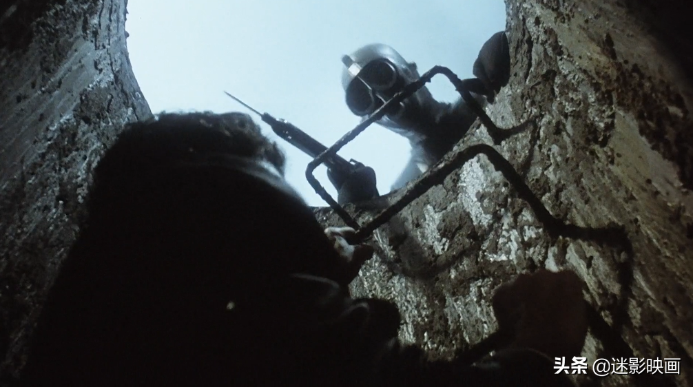 正当男主角打算爬出井口查看的时候,凶手居然出现,手持一把鱼枪射向艾里克。