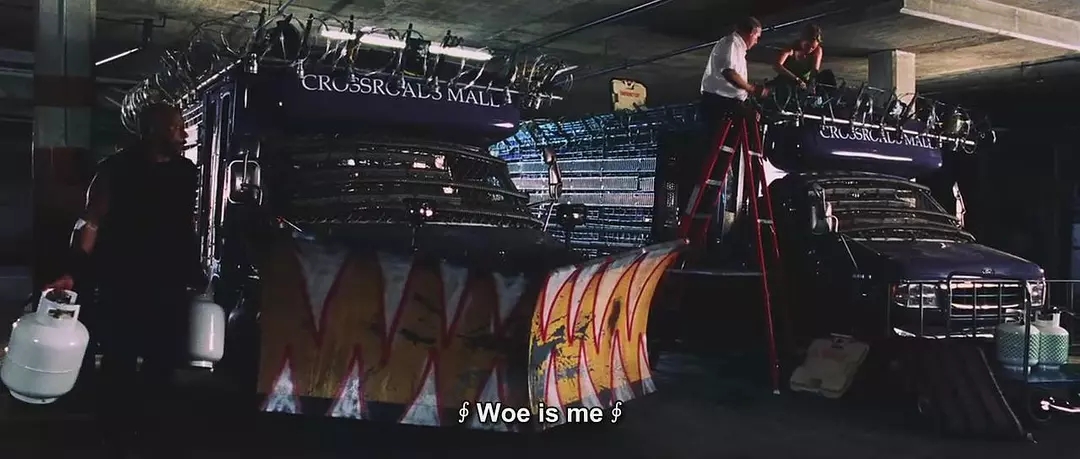 利用购物中心一切资源拼装战车,拉风的很。