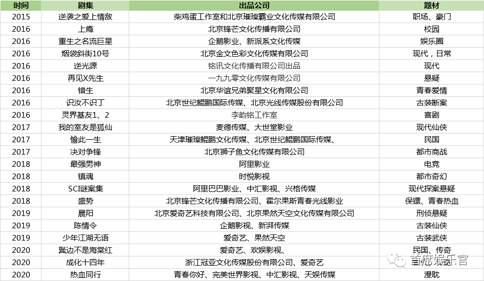 自2015年耽改开始流行以来,耽改剧从一开始的小体量发展为如今40集、50集的大体量,从小成本、小公司制作发展为阿里影业、光线影业、中汇影视、欢娱影视、爱奇艺、企鹅影视等均有参与的大公司大制作,服道化越来越精良,演出阵容与制作团队更加豪华,题材方面看,校园、娱乐圈、悬疑、电竞、仙侠等也都一应俱全,唯一不足也最重要的是,在故事梗概上,耽美元素消失得一干二净。