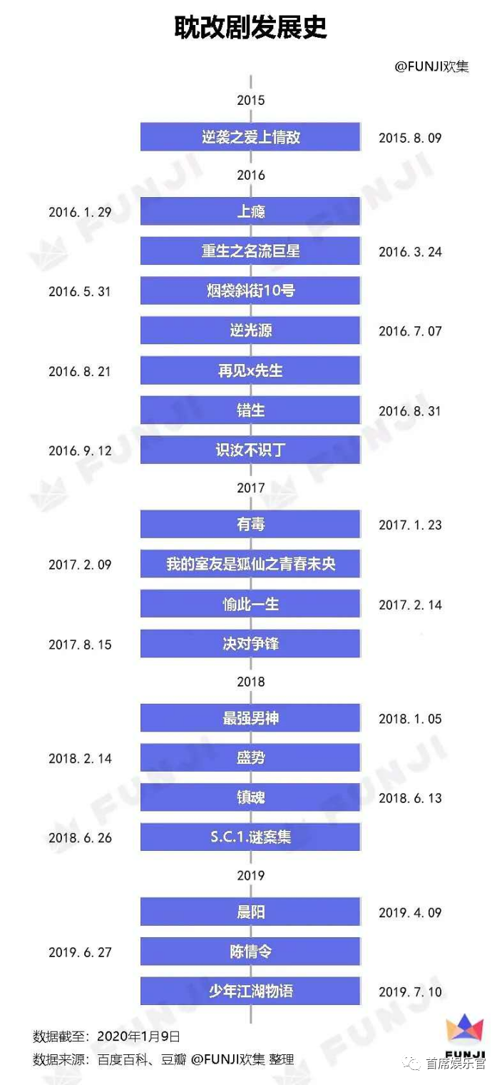 据@funji欢集整理的耽改剧发展历史,我国最早的一部耽改剧源于2015年的《逆袭之爱上情敌》,改编自柴鸡蛋,百度百科简单粗暴地介绍了这部网剧的梗概:“该剧讲述了一个穷屌丝逆袭成高富帅后抢走前女友的现男友的故事。”
