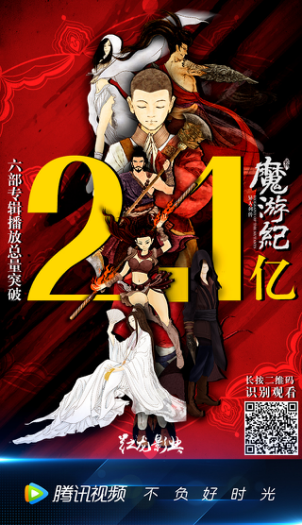 系列网络电影魔游纪6部终于迎来了大结局,而属于异人们的魔游之旅还在继续。该系列网络电影由红龙影业与腾讯视频联合出品,丁宇总监制,回宇导演,卢宇静、余浩瑞、于磊、崔璨等领衔主演。截止5月26日,魔游纪6部已全部于腾讯视频独家上线,播放总量突破2.1亿!弹幕总和破百万,评论破万。在网络电影市场中取得了相当优异的成绩!