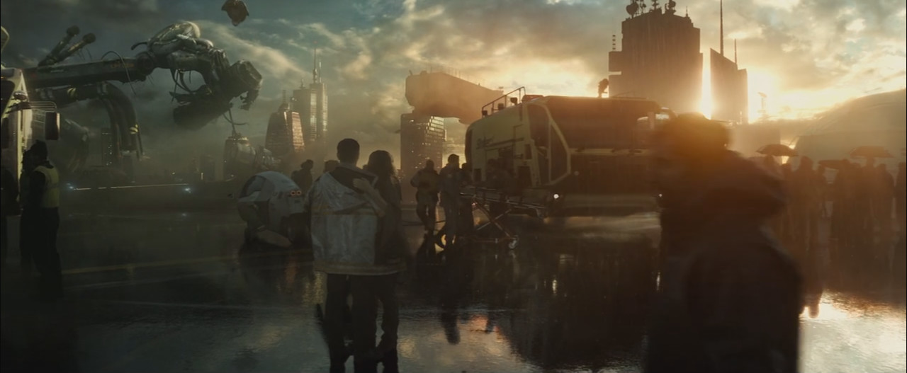 人们不光在思想上二元划分个体的身份等级,城市的居住区也逐步设计成了二元化,上层社会和下层社会的城市也分离了,我们观察《全面回忆》的分层城市构图,在巨型城市里,交通是被高层天桥分割的,下层是穷人脏乱差的生活区,上层是主流社会的天堂,这种结构的城市本身就是一种阶级隐喻,上层城市用的交通基本是飞行汽车,而底层城市几乎是用机器人维护治安,因为城市产生的效益已无法供给自身的维护了。