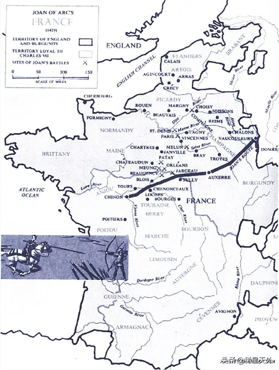 前往兰斯并不是一项简单的任务。这座城市位于英国控制区纵深,王太子的财务状况不佳。他花了将近一个月的时间来筹集军饷并集结了贞德所需的部队。他们将把英军的残部从雅尔若(jargeau)、卢瓦河畔默恩(meung)和博让西(beaugency)等地一一驱逐。