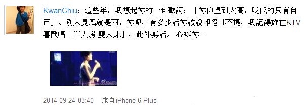 王菲被她签下不久,就为了好朋友那英向她开口,邱黎宽二话不说出手相助。