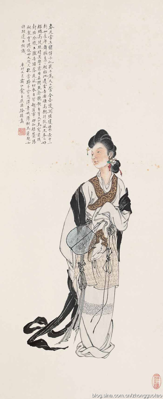 艺术家徐操 (1899-1961)字燕孙,我国著名的人物画家。河北深县徐家湾人,生于北京。画艺娴熟,弟子众多,主要擅长画人物故事、古装仕女,工笔、写意、白描、重彩,样样精能。