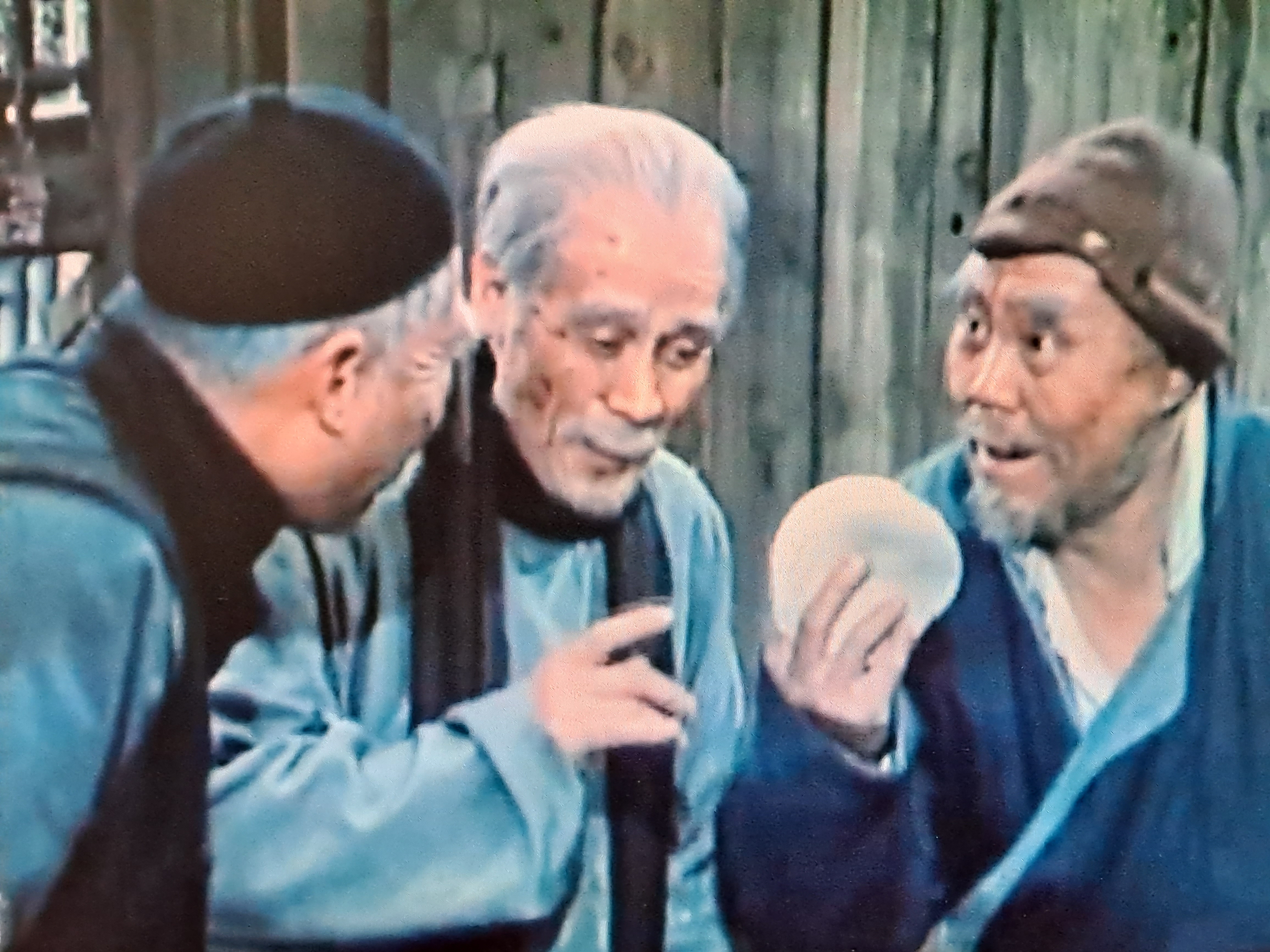 老舍先生的作品是冷峻的,他的笔锋貌似社会的手术刀一样,切入的不仅仅是肉眼所及的真相,还有灵魂和文化深处的阴暗。诸如影片中庞太监要买乡下丫头做老婆的桥段里,寥寥几笔,便将社会的腐败和民众的无知,以及先进人生所面临的艰难困境,展露无疑。值得一提的是,在这个桥段里饰演人贩子刘麻子的老戏骨英若诚,他不仅仅是一名演员,同时他还是一名翻译家,就在1979年这部影片创作的前夕,他还将《茶馆》翻译成英文版本。
