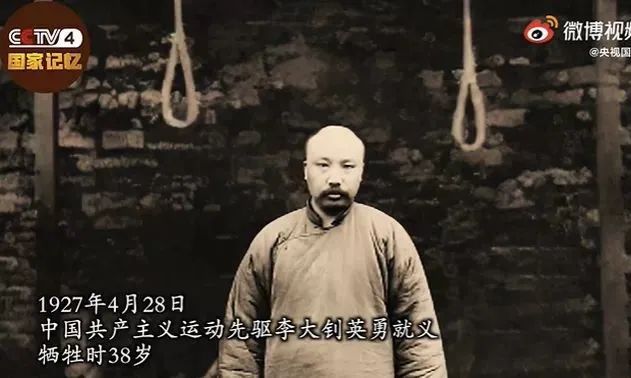 这张照片,拍摄于1927年4月28日,李大钊被施以绞刑前。
