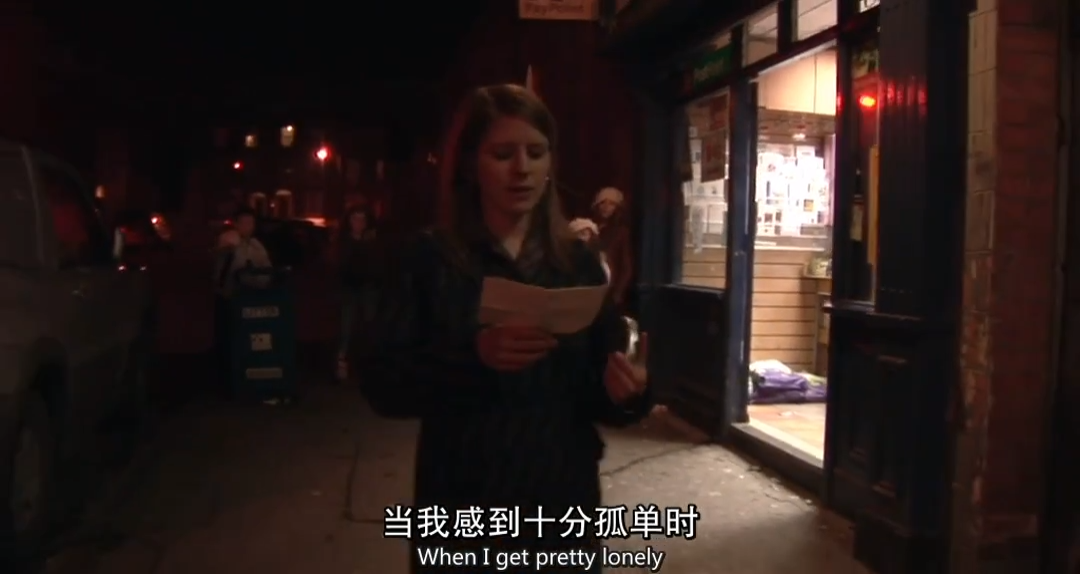 寂寥的大街,昏暗的灯光,女孩沉浸在自己的音乐世界。