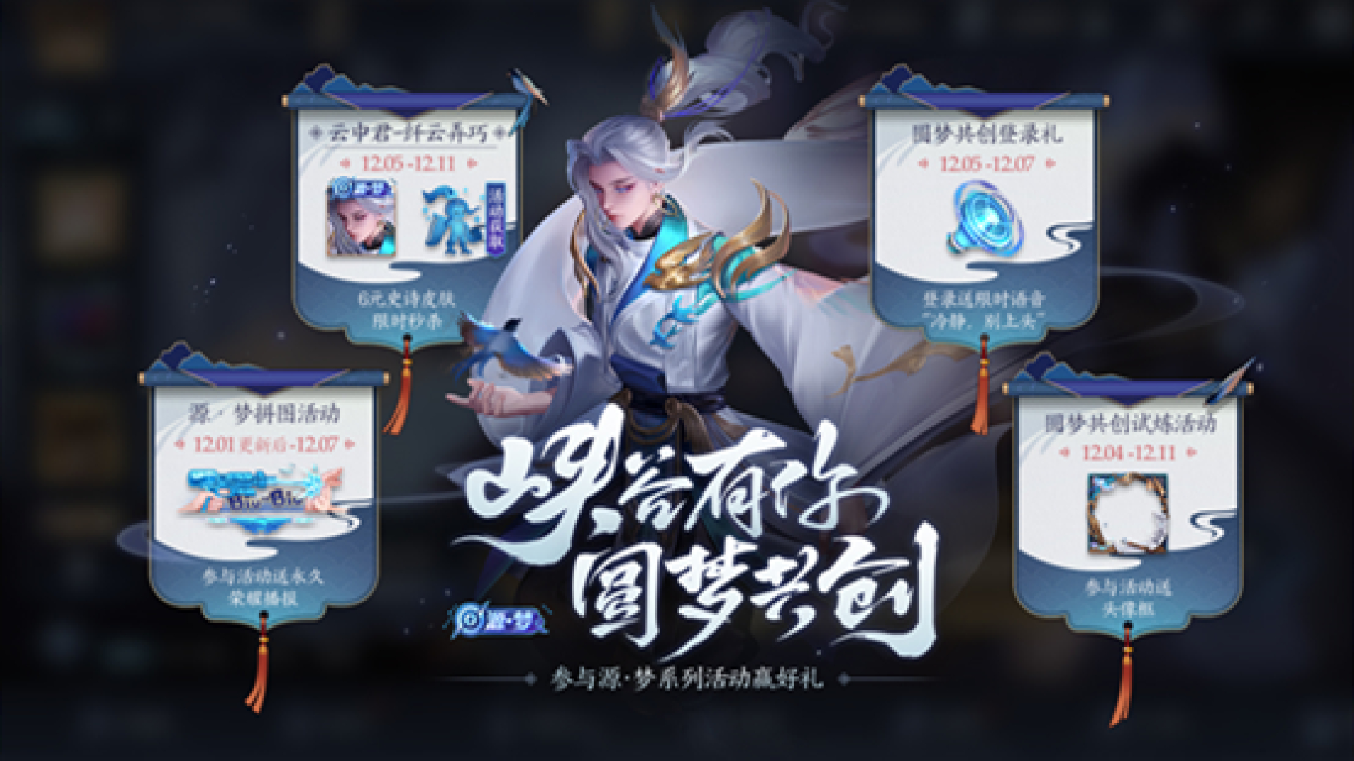 以上的话,可以说就是这次12月1日更新的重点内容了,可以说,这三点内容,都是比较硬的,活动方面都是诚意满满。但是嘛,其他的一些小活动也是不能忽略的,比如围绕云中君纤云弄巧展开的一些内容,头像框、荣耀播报、皮肤碎片等,如果有兴趣,也是可以进行参与的,积少成多嘛。
