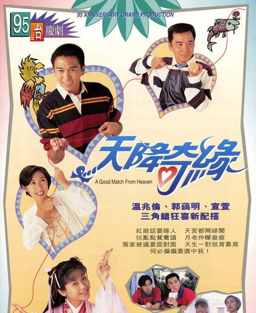 《天降奇缘》,温兆伦萱萱郭蔼明主演,1995年台庆剧,来自天宫红娘下凡之旅的故事。