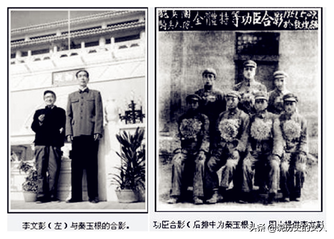 此时秦玉根的身高帮助了他。当时站在李文彭眼前的一排民兵中,1米85高的秦玉根最为显眼。那时的生活条件差,能长这么高的绝对是"鹤立鸡群"了。于是李文彭就走到了他的跟前。细看这个小伙子不仅健壮高大,而且十分精干,双目炯炯有神,透出一股咄咄逼人的英气。于是他就问身边的民兵领导,这小伙是谁?