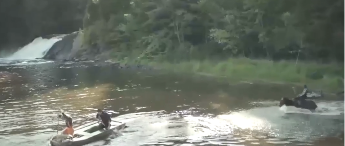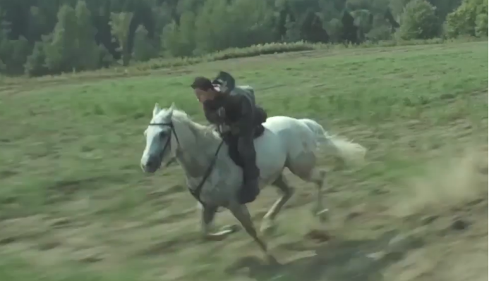 树林里女人骑着摩托不断变换方向,躲避身后的子弹,面对眼前的悬崖她毫不犹豫的冲了出去,骑着马的阿浩也来不及停下,两个人滚了五六七八圈之后,除了衣服埋汰点啥事没有。是马儿就没那么幸运了,前腿断了,阿浩不忍心看它成为一匹残疾马,干脆用匕首摸了脖。